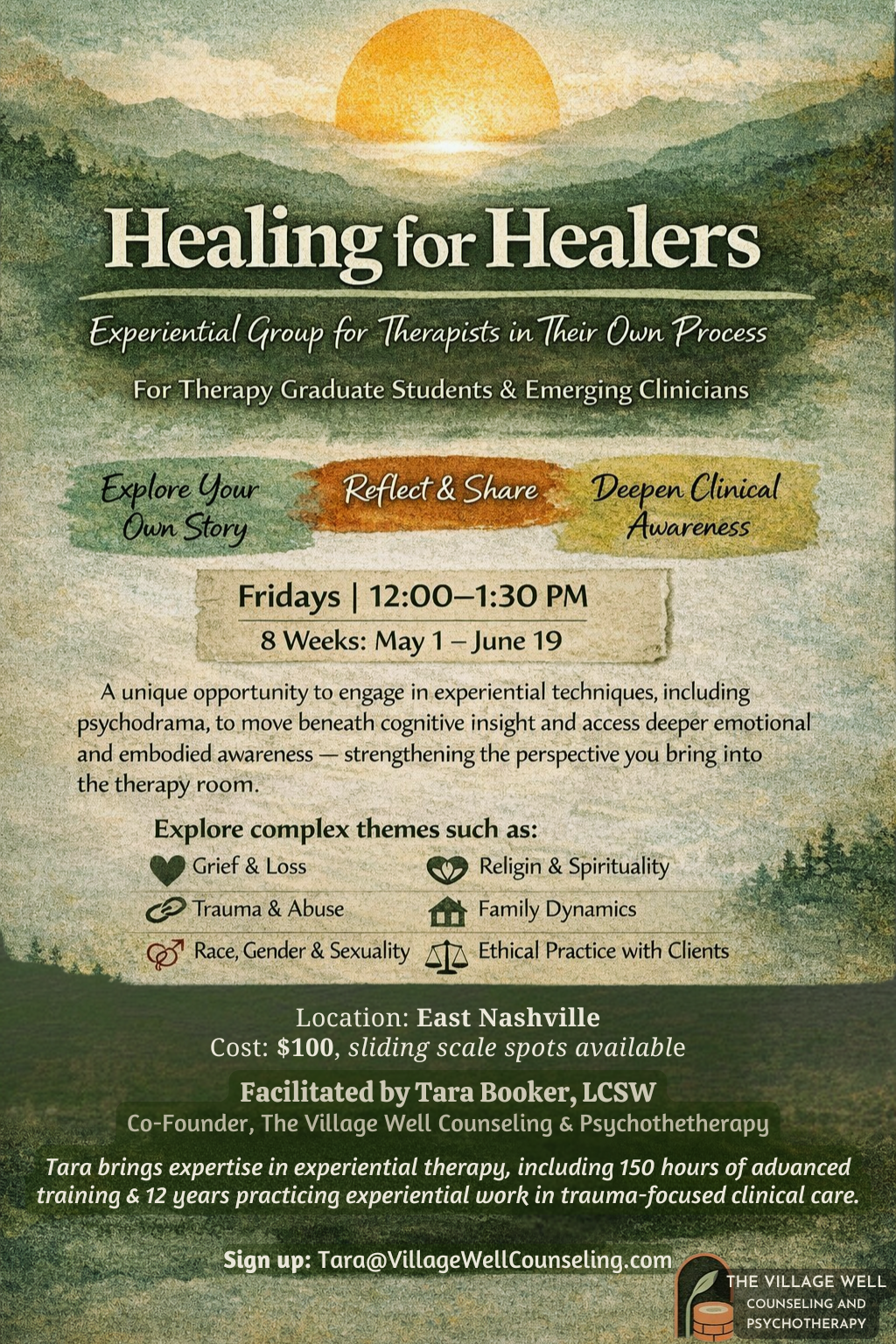 This group - designed for therapy graduate students and emerging clinicians - is intended to be reflective, supportive, and growth-oriented — helping to deepen self-awareness while developing greater intentionality in how their own story intersects with their clinical work. As a therapist who has facilitated experiential groups for years, I know the power of diving into our own history as clinicians in a collaborative healing space. Don’t miss this opportunity to enhance the experience of your personal therapy & therapeutic presence for clients by joining this group set to start May 1, 2026!